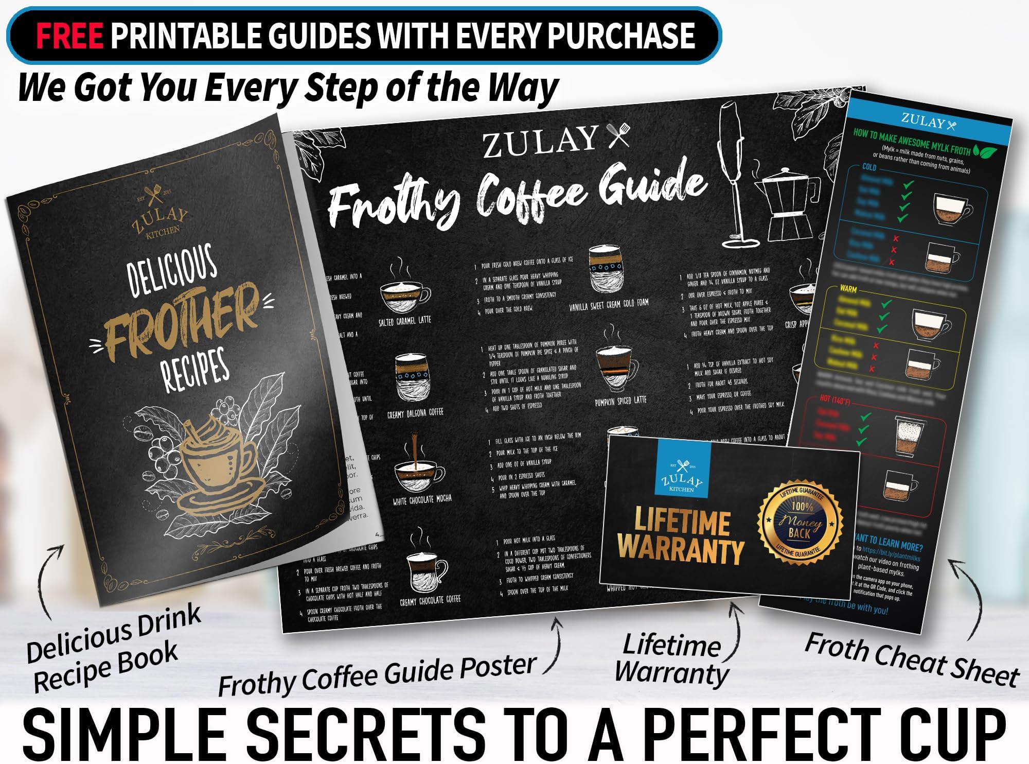 - איכות מוכחת ואמינה: מקציף קפה ידני זה, העשוי מחומרים איכותיים, עובד על כל סוגי החלב - חלב מלא, שקדים, סויה, קשיו או שמנת. מגובה באחריות לכל החיים של Zulay, הוא לא יחליד או ישבר.